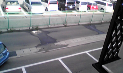 で、昨日の夜なんですけれども、折からの降り続く雨でうちのアパートの前が水浸しというかなみなみと水があふれていたんです。まあ、雨は翌朝方には止んでいる予報でしたからそのまま寝ようと思っていたんです。そしたら、夜の11時半くらいにたまたま間違い電話で起こされたんですけど、ふと気になって外を見てみますと、一面湖状態(T-T)。しかも、避難したのか、いつの間にかほかの車は姿を消していて、私の車を含めて4~5台しか残っていませんでした。私の車はそれでもほんの少し高い場所にあって水没50cmくらいかな。背の高いワゴンタイプでシートが少し高くなっていますからシート下が少しぬれた程度だったんですけど、私の部屋の前あたりが一番深くて、その場所に停まっているカロゴンなんかフロントグリルが水没したかと思ったら、突如としてクラクションが鳴りっぱなしに(笑)最初ぶぇ~って音がしていたんですけど、次第に水没してぐへぇ~って音に変わって、ハザードが点滅し始めて、ヘッドライトも点灯してエマージェンシー状態。そんな中、どこからともなく軽自動車が来て、なんと無謀にもその湖状態の道路を通過しようと入ってきたんですけれども、途中でタイヤが浮いてコントロール不能状態となってしまい、渋々バックして戻って行かれました。ちなみに写真は朝方撮影したもので、恐らく夜か明け方、前述の軽自動車と同じように無謀な通過をしようとしてコントロール不能となったと思われるワゴンRが放置されておりました。尤も、この状態でもだいぶ水は引いていますので、程なく乗って帰られたようですから、朝方通過しようとして失敗したのかな。ちなみに16時半現在こんな感じです。向かいの駐車場が1mくらい高くなっているのがわかりますでしょうか。そんなこんなで夜一睡もできず、きょうは会社をお休みさせていただきました。寝ないで出勤して、外仕事なんかしたら倒れてしまいますし、そんなことになったら会社にも迷惑をかけてしまいますからね。ほいで、私のモヴェはといいますと、フロアは水がなみなみとして、なんともどぶ臭い(笑)あと、少し低い助手席シート下はちょっとぬれておりました。助手席シート下のトレイも水がなみなみと入っていて、小間物もびっちゃびちゃ。イグニッションをかけるとエンジンは無事始動しましたけど、マフラーからしょぼぼぼぼと水がばしゃばしゃ排水。4枚のドア下にあるスピーカーも浸水していましたけど無事音がなりまして、どぶ臭いのと汚いのを除けば問題なさそうです。仕方がありませんのでフロアマットを外に干して、フロアの水を雑巾で吸わせて絞る動作をひたすら続けておりましたら、いつしかマメができてつぶれてしまい、手は傷だらけ。それでも汚れも雑巾がけしてひとまず元通り。レオパからも確認の電話がありましたけど、「移動場所は提供できませんけど、自主避難してください」だって。つか、最初からわかっているなら入居時に教えて欲しいものですよねぇ~。そしたら洪水が始まった時点でほかの車みたいに適当なところに車を移動して車中泊で避難したのにと思うわけですけれども、これからしばらくまだ雨の予報が続いておりますので、当分予断を許さないってところかな。あ、ちなみに部屋自体は2階なので、よほどのことがなければ大丈夫かと思いますけど、玄関が1階にありますから昨夜は靴とサンダルを下駄箱の高いところに避難させました。しかしまあ、こんなんも含めて郡山ライフなんでしょうねぇ~。ちゃんと2年も生きていけるかすぃら。